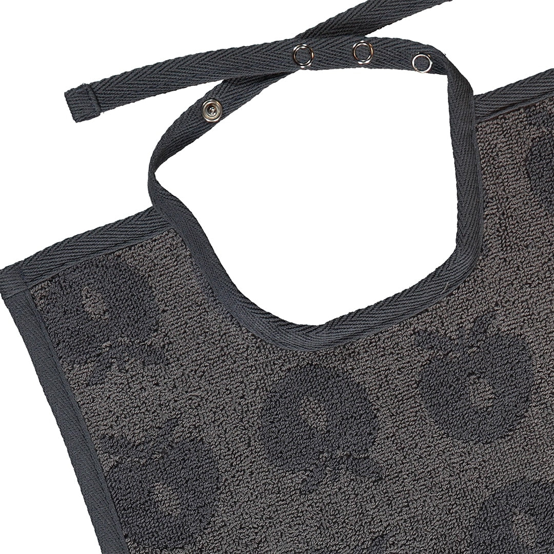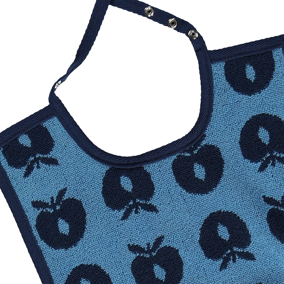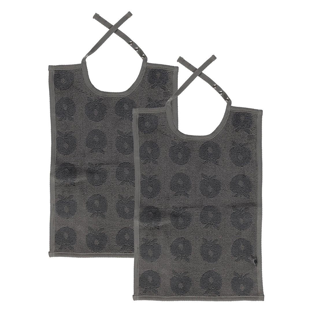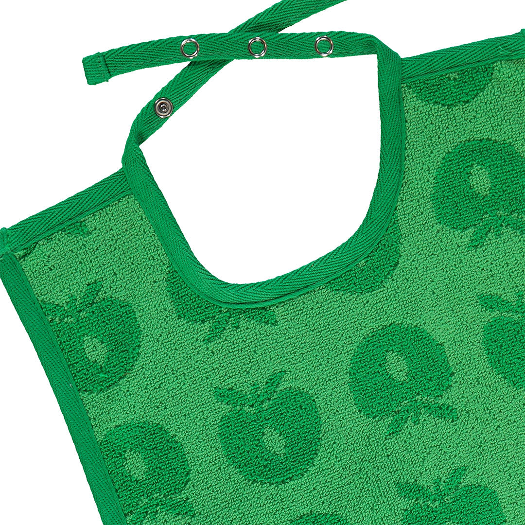 Hagesmækken har bindebånd med trykknapper, så hagesmækken nemt kan tilpasses barnet og måler 28x45 cm