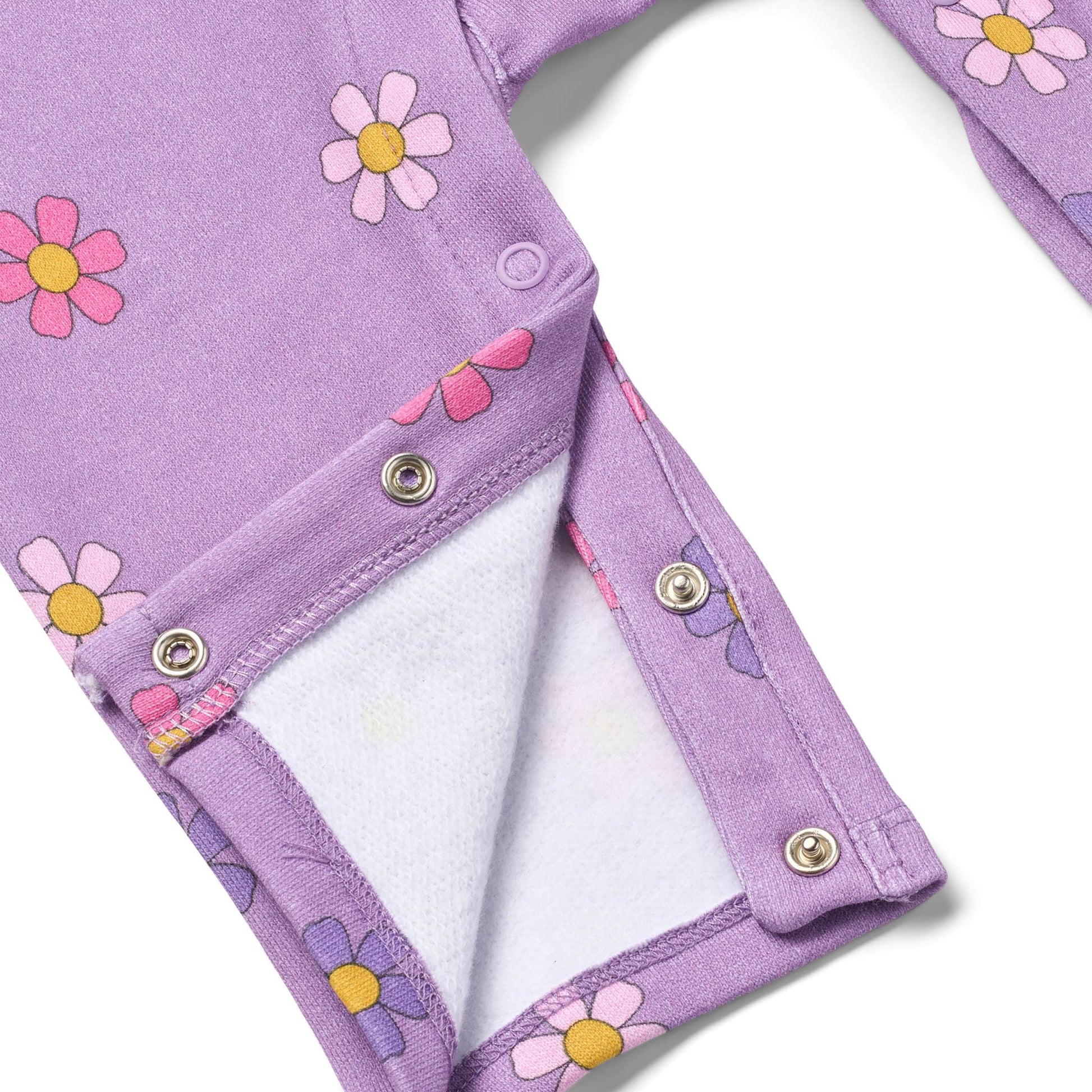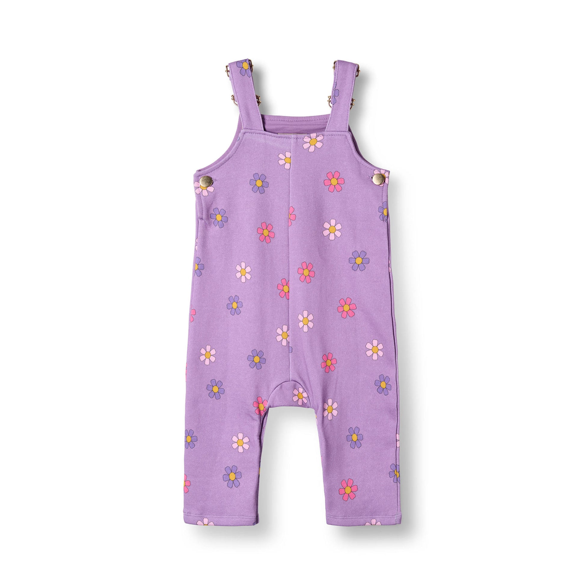 Babyoveralls med blomsterprint og broderi, produceret i et blødt og varmt børstet sweat materiale i 100% økologisk bomuld. Disse smækbukser er OEKO-TEX Standard 100® certificeret, hvilket betyder, at bukserne er produceret og testet for skadelige stoffer, så du kan passe på dit barns hud og helbred.