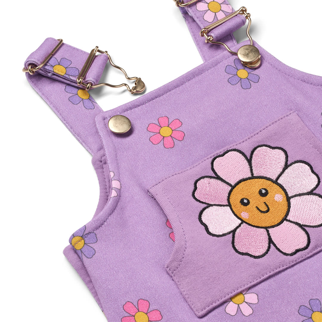 Lys op hver dag med vores muntre blomsterprint, perfekt til de små, der elsker naturen! Småfolks print er designet med fokus på glade farver, detaljer og historier. Vores overalls er en fantastisk måde at tilføje personlighed til dit barns garderobe, samtidig med at dit barn kan føle sig godt tilpas hele dagen.