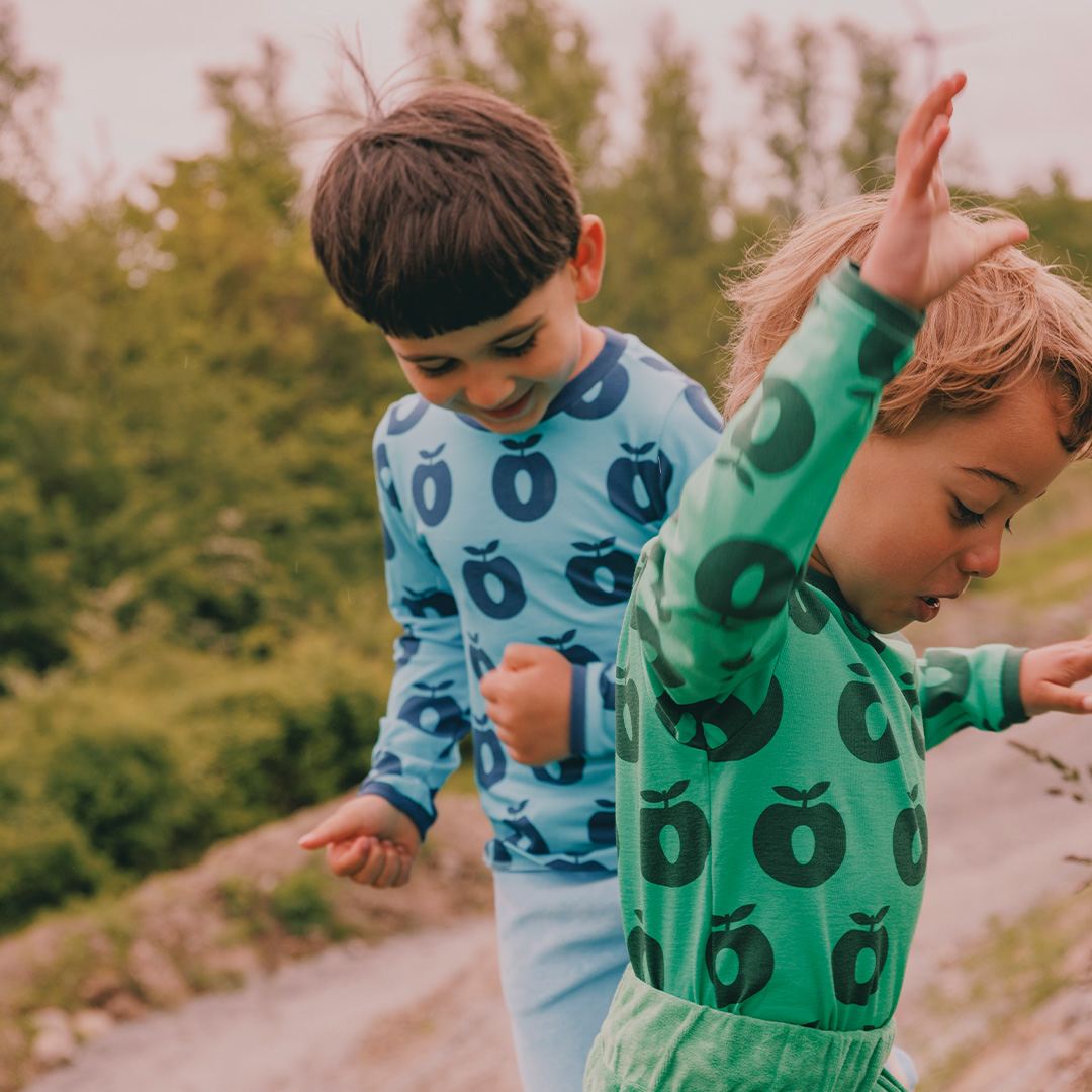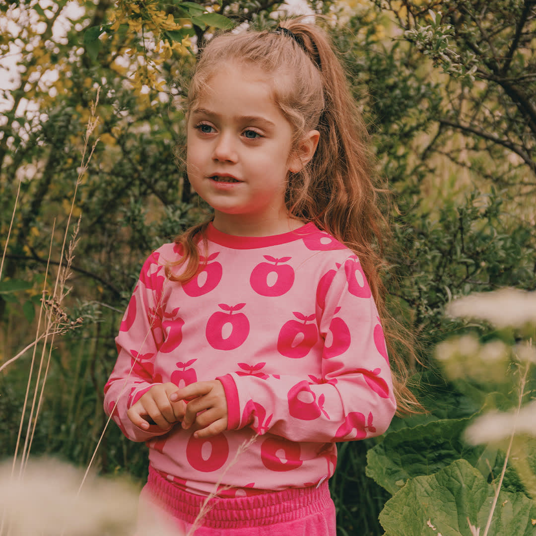 Det ikoniske æbletryk er et symbol på Småfolks oprindelse og historie. Printet tilføjer et strejf af finurlighed og et drys sødme til hvert outfit. Småfolks print er tegnet med fokus på glade farver, detaljer og historier. Vores langærmede bluser er en god måde at tilføje personlighed til dit barns garderobe, samtidig med at dit barn kan føle sig komfortabel hele dagen.