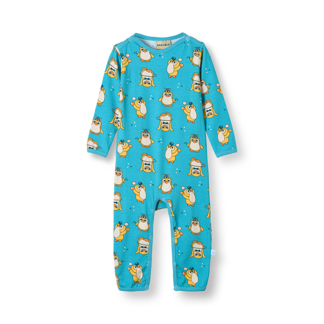 Lad legesyge cirkuspingviner tilføje et strejf af lune og charme til din babys outfit. Småfolks print er tegnet med fokus på glade farver, detaljer og historier. Vores heldragter til babyer er en god måde at tilføje personlighed til dit barns garderobe, samtidig med at dit barn kan føle sig komfortabel hele dagen.