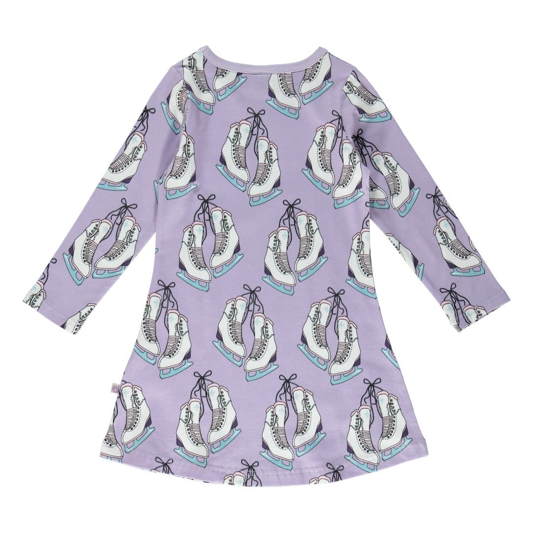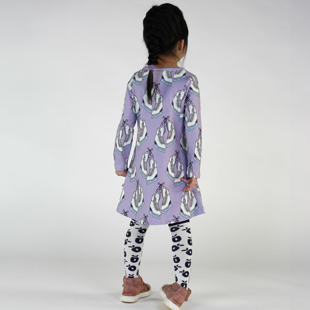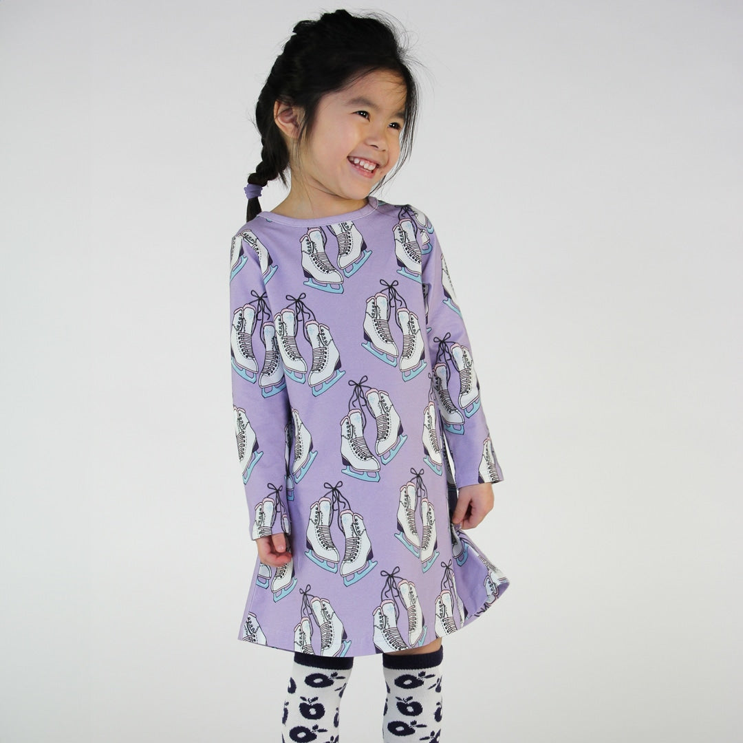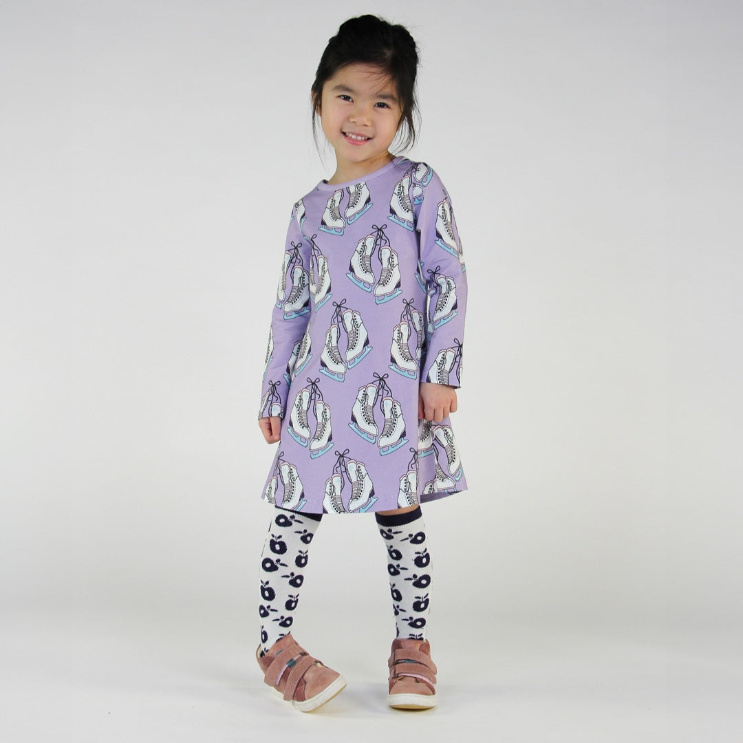 Skøjterne er elegante og søde. Dette print kan bruges hele året og kan nemt matches med andre prints eller bruges som et statement print. Småfolks print er tegnet med fokus på glade farver, detaljer og historier. Vores kjoler er en god måde at tilføje personlighed til dit barns garderobe, samtidig med at dit barn kan føle sig komfortabel hele dagen.