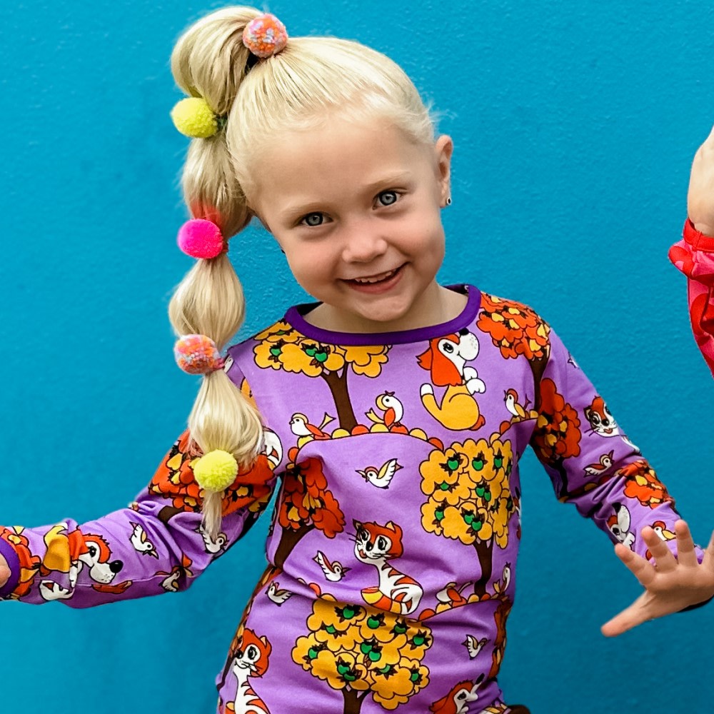 Småfolks print er tegnet med fokus på glade farver, detaljer og historier. Vores langærmede bluser er en god måde at tilføje personlighed til dit barns garderobe, samtidig med at dit barn kan føle sig komfortabel hele dagen.