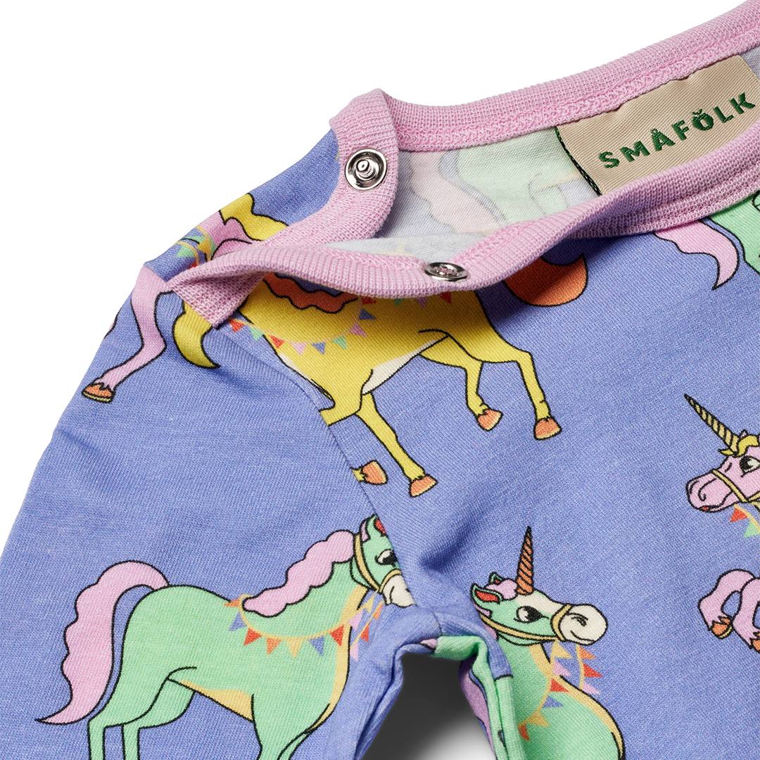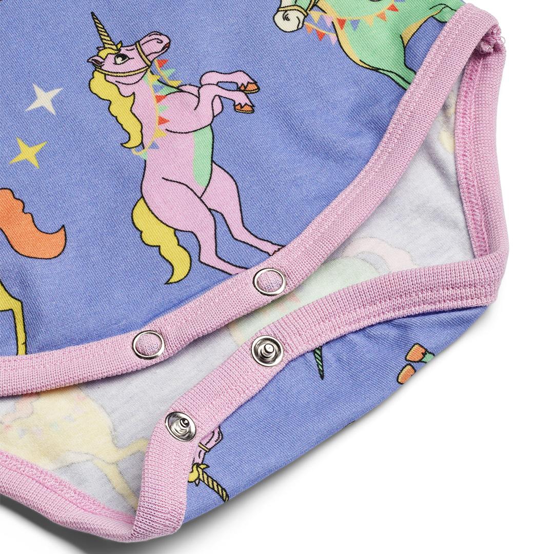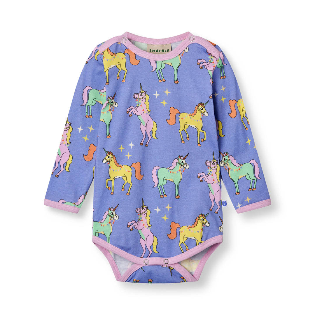 Lad fantasien svæve med vores mystiske og festlige enhjørningprint, drysset med sjove farver og fe støv. Småfolks print er tegnet med fokus på glade farver, detaljer og historier. Vores bodyer er en god måde at tilføje personlighed til dit barns garderobe, samtidig med at dit barn kan føle sig komfortabel hele dagen.