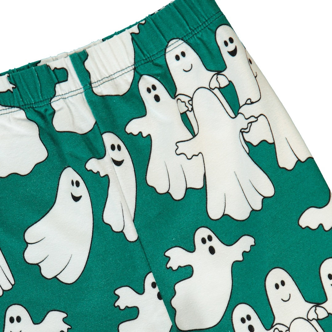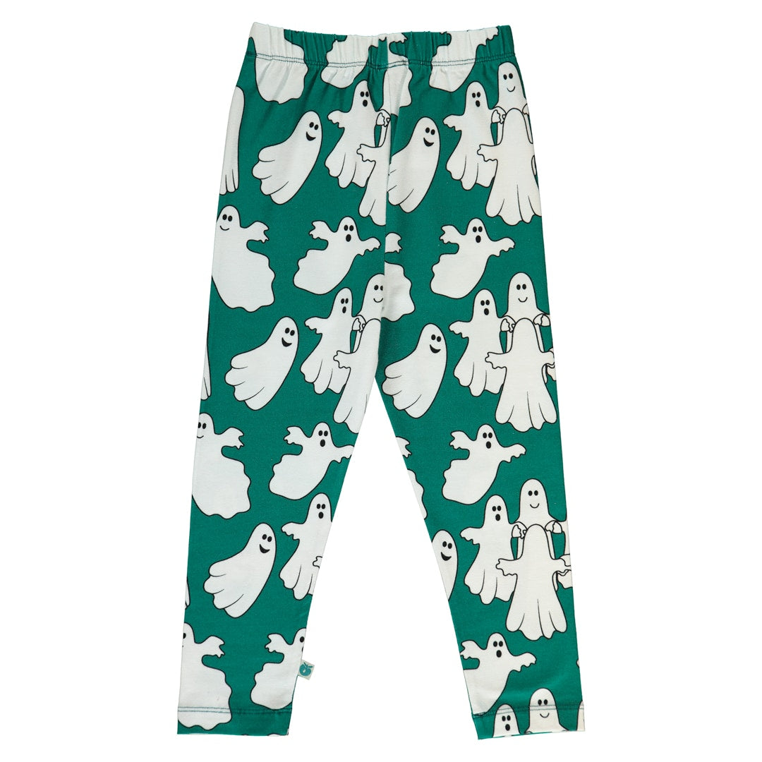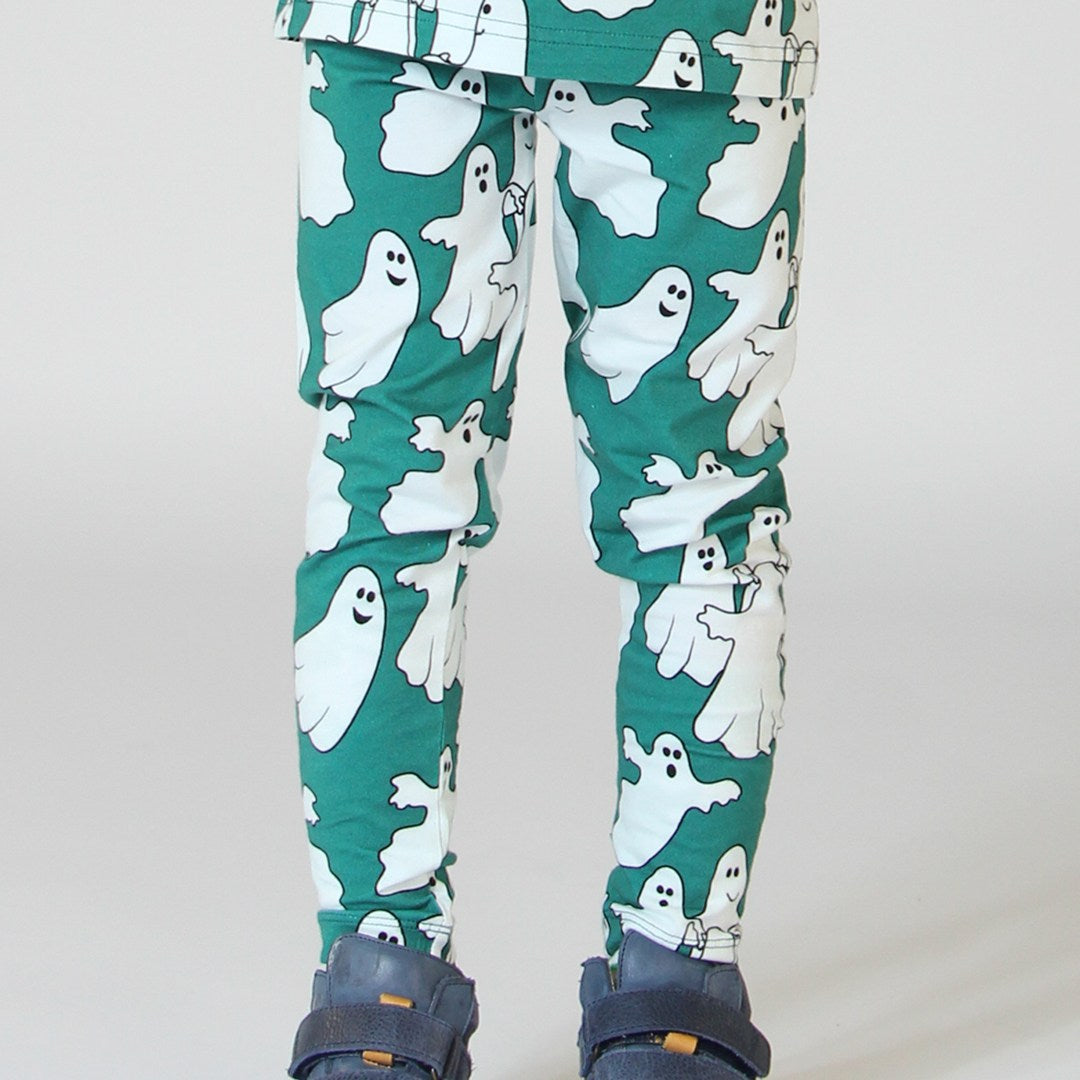 Leggings med spøgelser, produceret i en økologisk og strækbar bomuldsjersey. Disse leggings er OEKO-TEX Standard 100® certificerede, hvilket betyder at vores leggings er produceret og testet for skadelige stoffer, så du kan passe på dit barns hud og helbred.