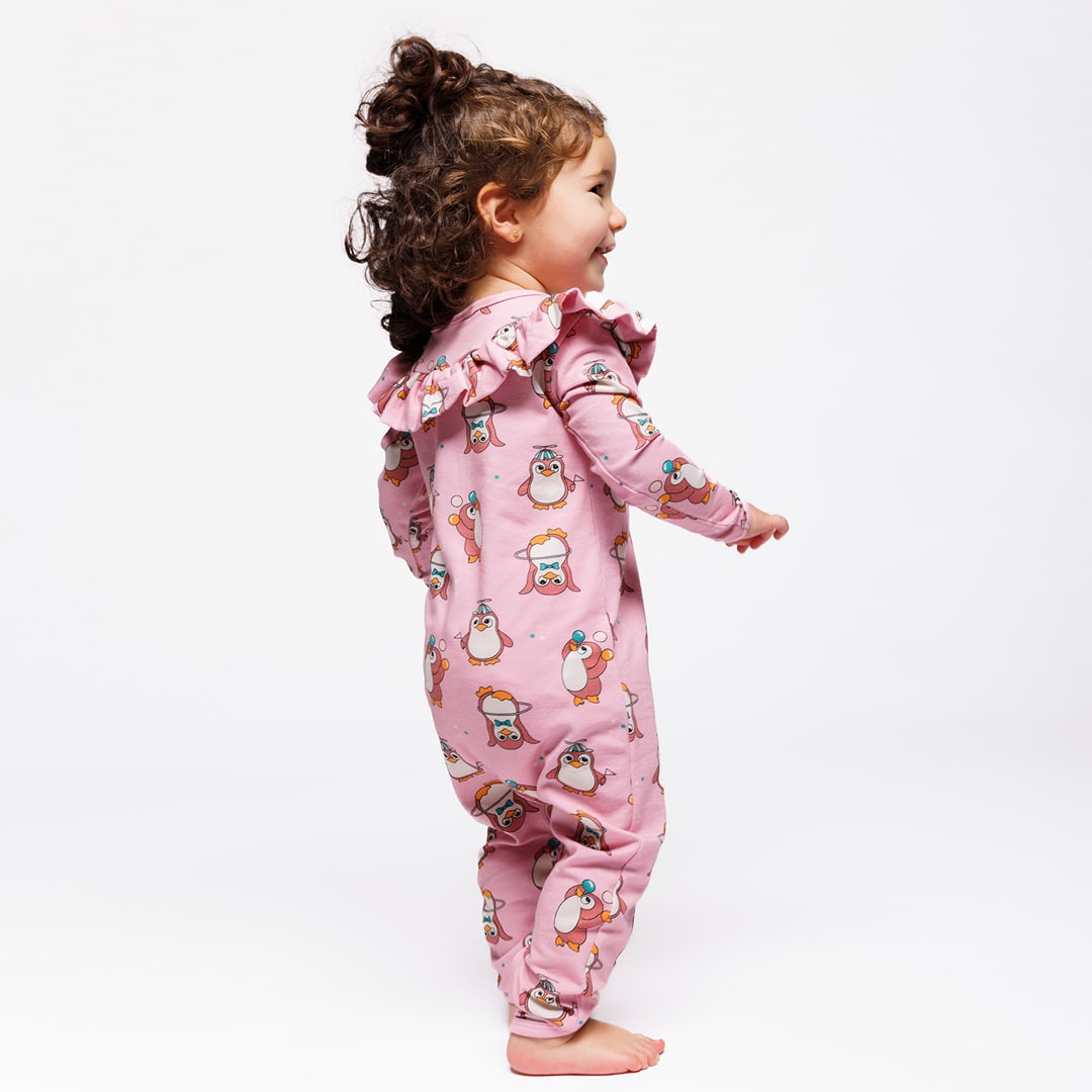 Lad legesyge cirkuspingviner tilføje et strejf af lune og charme til din babys outfit. Småfolks print er håndtegnede og designet med fokus på glade farver, detaljer og historier. Vores babydragter er en fantastisk måde at tilføje personlighed til dit barns garderobe, samtidig med at dit barn holder sig komfortabelt hele dagen.
