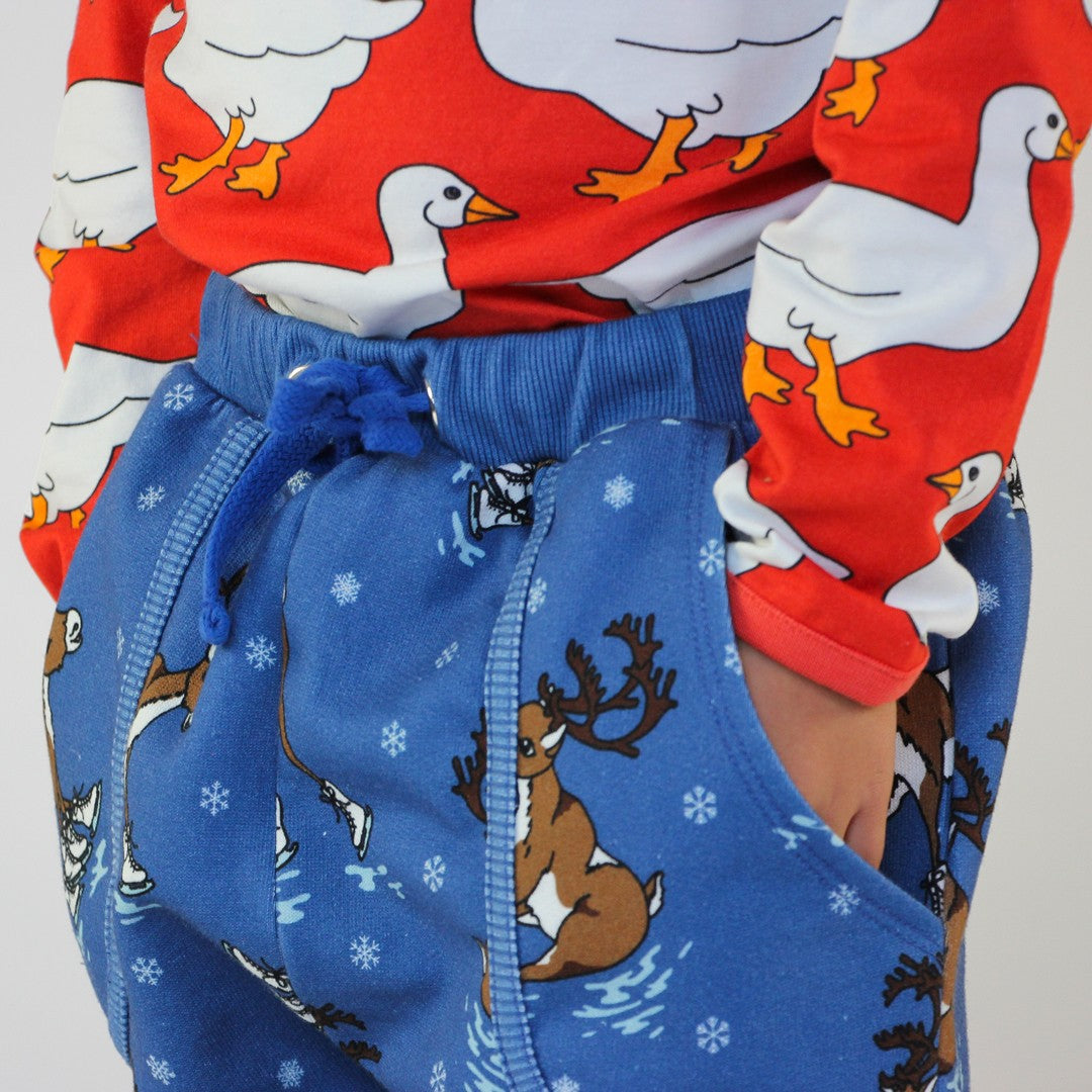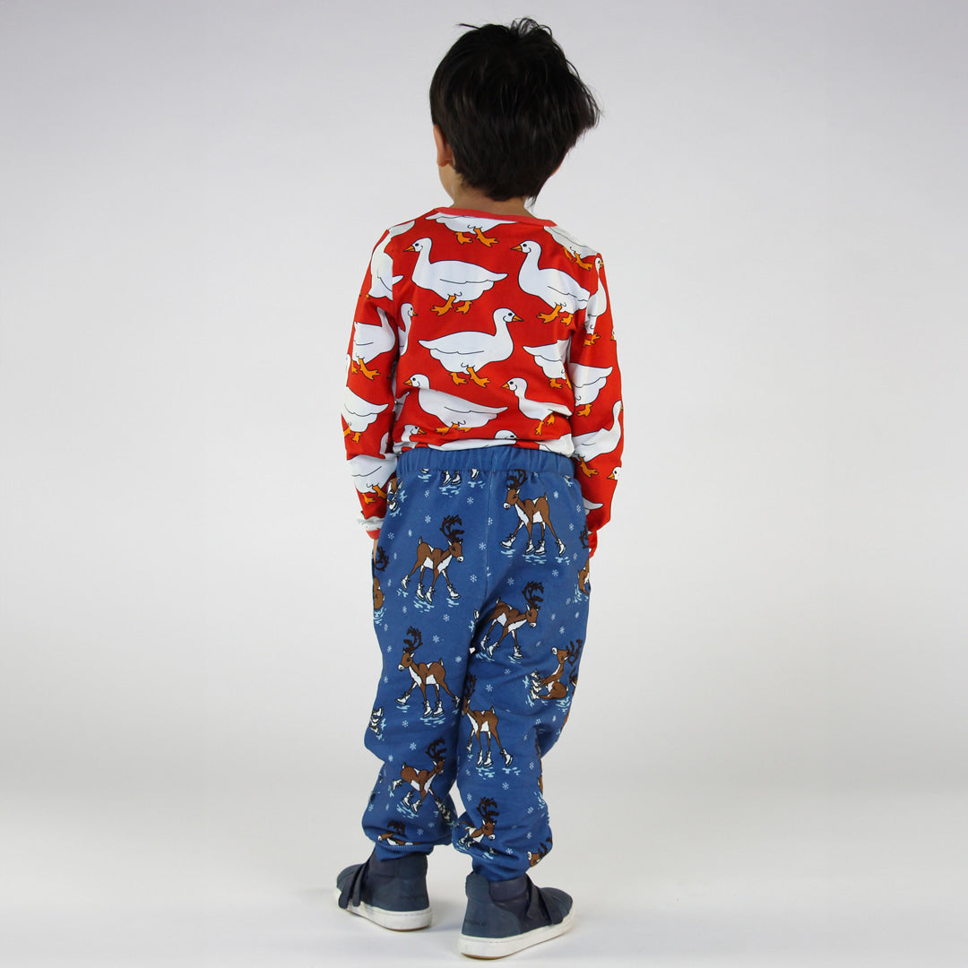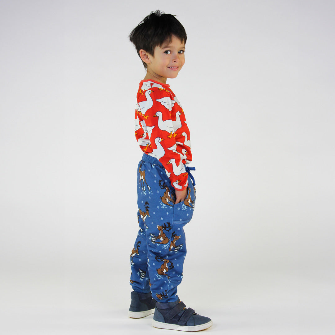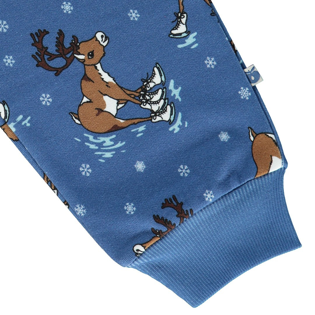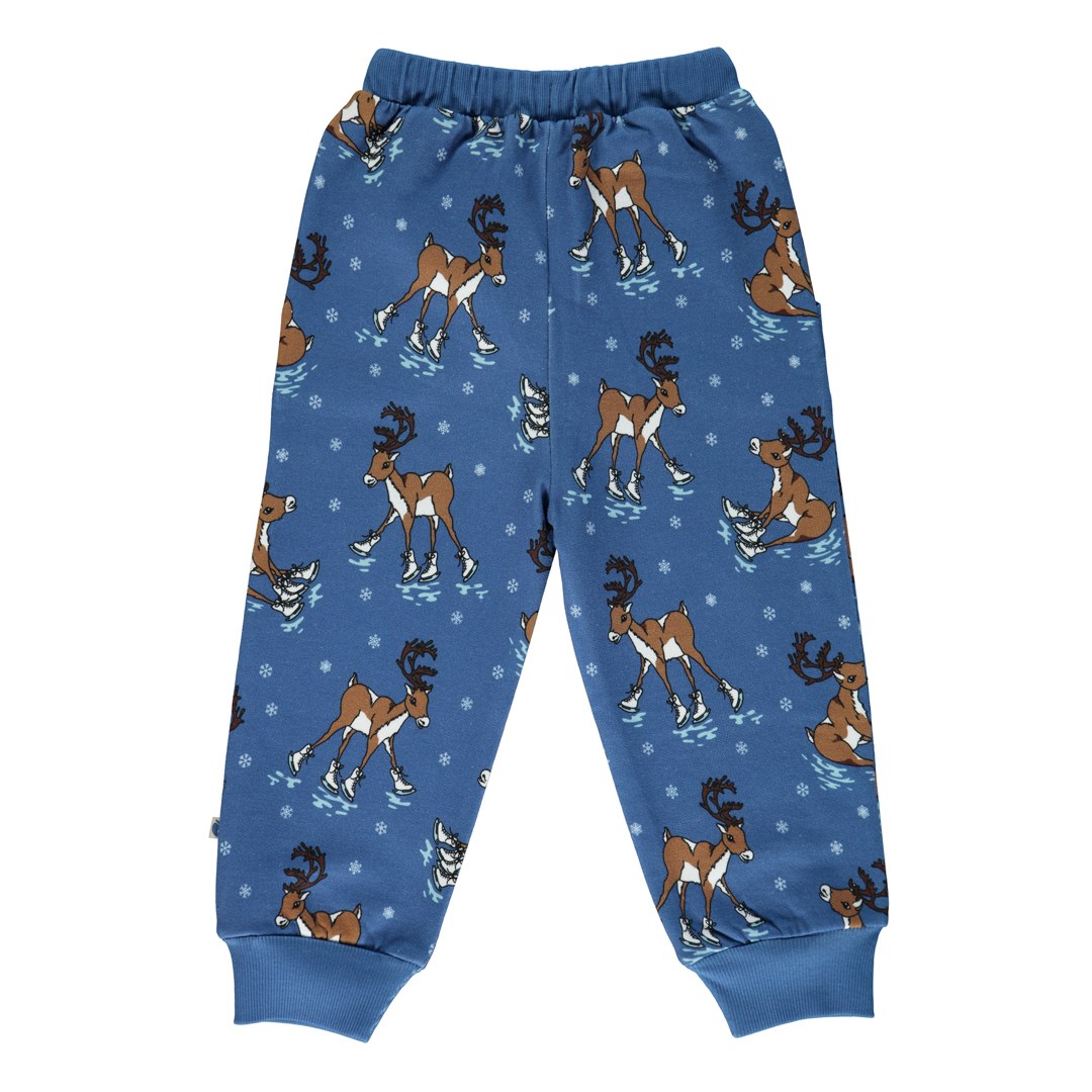 Bukser i et børstet sweat materiale med rensdyr, produceret i 100% økologisk bomuld. Disse bukser er OEKO-TEX Standard 100® certificeret, hvilket betyder at bukserne er produceret og testet for skadelige stoffer, så du kan passe på dit barns hud og helbred.